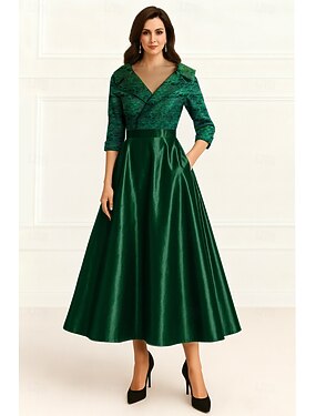 A-Linie Tee-Länge Partykleid Cocktailkleid Flattriges Kleid Dreiviertelarm V Ausschnitt Elegant Formell Hochzeitsgast Polyester Brautmutterkleid mit Seiten-drapiert