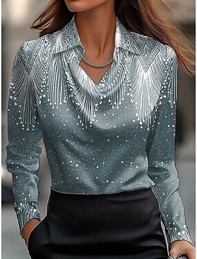 Damen Hemd Grafik Geometrisch Elegant Stilvoll Modern Langarm Wasserfallausschnitt V Ausschnitt Normale Oberteile Arbeit Party-Abendmode Täglich Gerafft Drapiert Marineblau Grün Beige Sommer Herbst