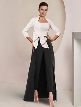 Jumpsuit Mutter der Braut Formelle Hochzeitsgast Elegante Party Quadrat-Ausschnitt Knöchellänge Stretchstoff 3/4 Lange Ärmel mit Schleife(n) Farbblock