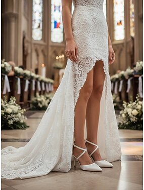 Elegante Brautschuhe für Garten- und Standesamthochzeiten, weiße Brautschuhe mit spitzer Zehenpartie und Kristallriemen