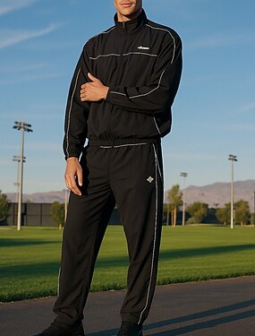 Herren Trainingsanzug Jogginganzug 2 teilig Vollreißverschluss Einfarbig Outfit-Set Kombination Frühling Herbst Winter Schwarz Weiß Aktives Training Joggen Laufen Thermowarm Weich