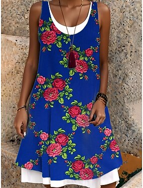 Damen Midikleid Trägerkleid Mode Klassisch Täglich Outdoor Wochenende Normale Passform Grafik Ärmellos Rundhalsausschnitt Königsblau Sommer Frühling Herbst