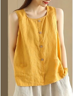 Damen Langes Kleid Maxikleid Kunstbaumwollleinen Shiftkleid Freizeitkleid Elegant Stilvoll Basic Täglich Arbeit Urlaub Normale Passform Einfach Ärmellos Hemdkragen Blau Schwarz Gelb Rosa Sommer