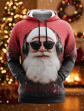 Weihnachten Herren Weihnachtsmann Kapuzensweatshirt Pullover Mode Täglich Lässig Rundhalsausschnitt Mit Kapuze Heim Party Geschenk Schwarz 1 Rote Schwarz 2 Kordelzug Herbst Winter Designer S M L XL
