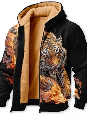 Herren Tiger 3D Fleece Kapuzensweatshirt Jacke Pullover Klassisch Jagd Langarm Rundhalsausschnitt Outdoor Camping Dunkelgelb Schwarz 1 Schwarz Schwarz 2 Reißverschluss Herbst Winter Designer S M L XL