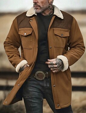 Herren Winterjacke Kunstpelzmantel Urlaub Täglich Thermowarm Fleece Herbst Winter Einfach Mode Streetwear Revers Lang Kaffee Jacken