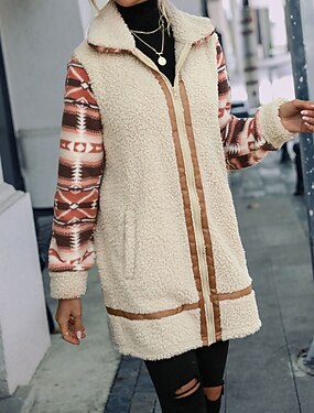 Damen Wintermantel Fleecejacke Teddymantel Warm Bequem Patchwork Reißverschluss Tasche Mode Lässig Blumen Urlaub Straße Lässig Alltagskleidung Regulär Umlegekragen Normale Passform Langarm