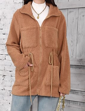 Damen Fleecejacke Teddymantel Warm Atmungsaktiv Reißverschluss Tasche Mit Fleecefutter Lässig Einfach Urlaub Straße Alltagskleidung Ausgehen Reisverschluss Regulär Umlegekragen Normale Passform