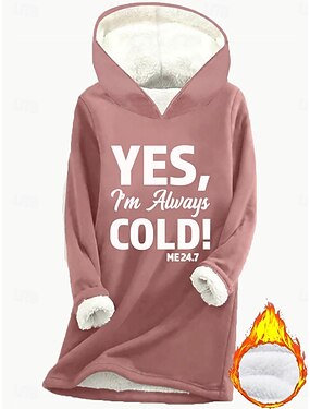 Damen Kapuzenpullover Grafik Buchstabe Warm Lässig Sherpa-Fleece Langarm Mit Kapuze Lange Oberteile Straße Alltagskleidung Lässig Druck Schwarz Rosa Dunkelpink Rote Blau Herbst Winter