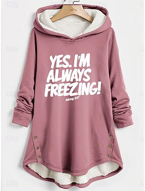 Damen Kapuzenpullover Grafik Buchstabe Warm Lässig Flauschig Langarm Mit Kapuze Lange Oberteile Lässig Sport Druck Rosa Blau Grau Herbst Winter