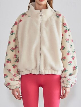 Damen Wintermantel Fleecejacke Teddymantel Warm Bequem Patchwork Reißverschluss Tasche Mode Lässig Blumen Urlaub Straße Lässig Alltagskleidung Regulär Umlegekragen Normale Passform Langarm