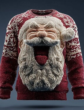 Hässlicher Weihnachtspullover Herren Weihnachtsmann 3D-Druck Pullover Strickware Rundhalsausschnitt Lässig Outdoor Weihnachtsgeschenke Urlaub warm halten Langarm Herbst Winter Rote Grün