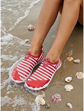 Damen-Wasserschuhe mit roten Streifen, schnelltrocknend – leichte, atmungsaktive Aquaschuhe mit rutschfester Sohle, flexible Barfuß-Strandschuhe zum Schwimmen, Surfen, Flusswandern, Tauchen und für