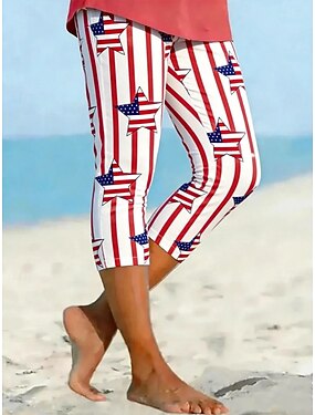Unabhängigkeitstag Patriotische Damen Leggings Urlaub Vintage Mode Capri Hohe Taille Hose Grafik Flaggen Druck Komfort Weich Atmungsaktiv Dehnbar Freizeit Büro Weiß Rot Weiß-Blau Rot Blau