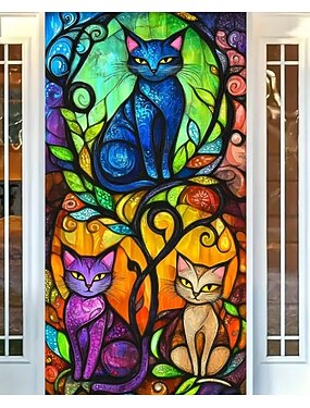 Türabdeckung Banner für den Außenbereich Katze Farbiges Glas Ästhetisch Mystiker Schlafzimmer Wohnzimmer Vordert¨¹r? Dekorationen Wand Tür Hintergrund