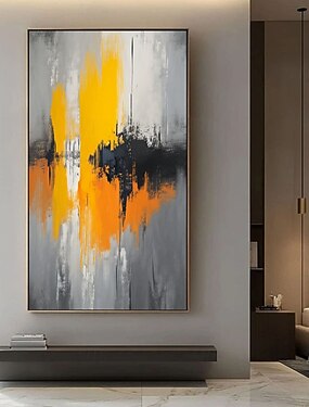 großes, luxuriöses abstraktes Leinwandbild für die Wand im modernen Wohnzimmer &Elegante Wanddekoration fürs Büro, stilvoller Akzent für die Inneneinrichtung, goldene Eleganz, leuchtende Farben, Acryl