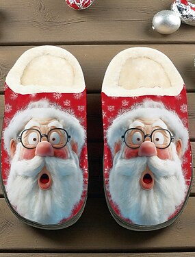 Herren-Fleece-Hausschuhe mit Weihnachtsmann-Aufdruck, lustige Hausschuhe mit Weihnachts-Cartoon, warme Plüsch-Hausschuhe, perfekt für den Winterurlaub und zum Verschenken