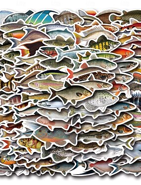 110 Fischaufkleber für Erwachsene und Kinder, wasserfeste Vinylaufkleber mit Meeresmotiven für Laptop, Wasserflasche, Handy, Kindle, Tagebuch, Sammelalbum, Skateboard, Gepäck, keine doppelten