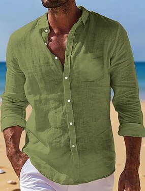 Herren Hemd Leinenhemd Sommerhemd Strandbekleidung Knopfhemd Einfach Lässig Täglich Schwarz Weiß Rosa Grün Langarm Kragen Frühling & Sommer Bekleidung