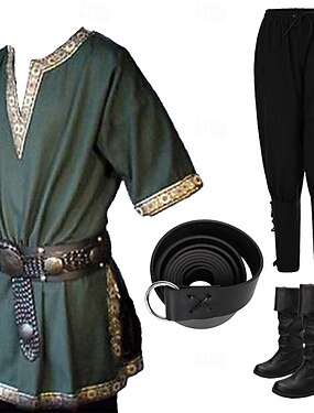 Mittelalterlich Renaissance 17. Jahrhundert Stiefel Taillengürtel Hemd Pirat Krieger Ritter Wikinger Keltischer Ritter Bestickt Stickerei Kostüm Herren Vikinger Fantasie Halloween Maskerade Leistung