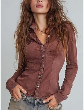 Damen Hemd Durchgeknöpft Hemd Freizeithemd Knöpfe Einfach Vintage Stilvoll Klassisch Langarm Hemdkragen Normale Oberteile Täglich Ferien Ausgehen Rote Frühling Herbst