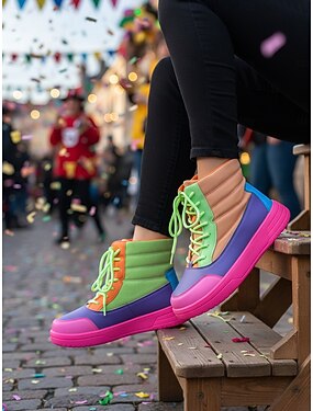 Damenschuhe Mardi Gras Bunte Karneval High-Top-Sneaker mit mehrfarbigen Panels und Schnürsenkeln lustige und lebhafte Streetstyle-Schuhe für Festivals Partys Paraden und Abenteuer im Freien