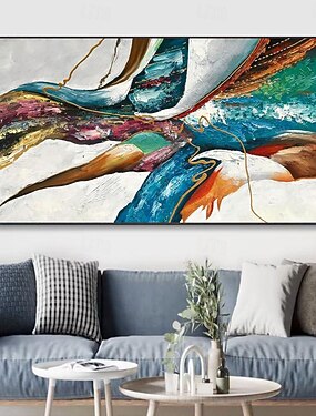 Handgemaltes Ölgemälde auf Leinwand, modernes abstraktes, großformatiges, farbenfrohes Wandbild mit dicker Öltextur, ideal für Wohnzimmer und Zuhause, auf Keilrahmen gespannt / ohne Rahmen