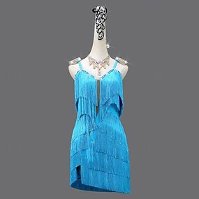 Lateinamerikanischer Tanz Kleid Kristall / Strass Quaste Unifarbe Damen Leistung Party Ärmellos Spandex