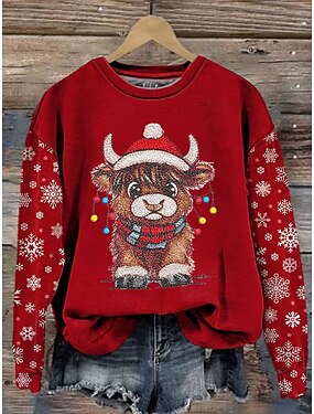 Weihnachten Damen T-Shirt Grafik Claus Vintage Stylisch Klassisch Langarm Crew Neck V-Ausschnitt Reguläre Tops Daily Knöpfe Druck Asymmetrisch Schwarz Rot Blau Grün Frühling Herbst Winter