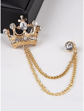 Herren-Anstecknadel in Kronenform mit Kette, aus einer Legierung, erhältlich in Gold und Silber, perfekt für Hochzeiten und Partys