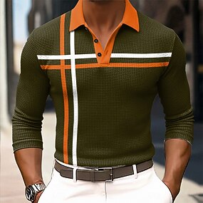 Herren Gestreift Waffel-Poloshirts Langarm Polo-Shirts Hemden mit Kragen Business-Casual Geschäft Büro-Outfit Alltagskleidung Knöpfe Frühling Herbst Winter orange1 Orange 2 Orange