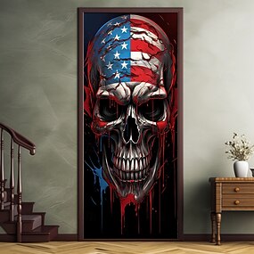 Schädel Türdekorationen Türabdeckungen 4. Juli Patriotischer Unabhängigkeitstag Hintergrund Innen/Außen Türbanner für die Haustür Bauernhaus