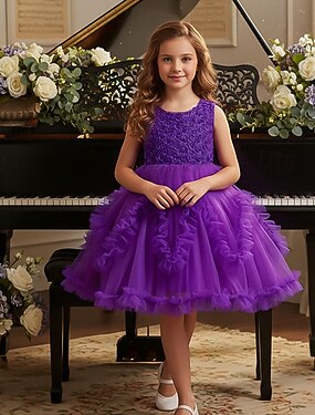 Blumenmädchenkleid Mädchen Formelle Kleidung Hochzeitskleidung Party Hochzeit Formell Niedlich Prinzessin Schön Kleid für die Erstkommunion Patchwork Netz Blumen Ärmellos Rundhalsausschnitt Weiß Rosa