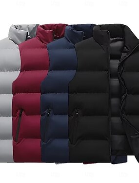 Herren Winterweste Pufferweste Ärmellos Weste Außen Thermowarm Leicht Atmungsaktiv Winter Reißverschluss Polyester Schwarz Rot Dunkelblau Jagd Angeln Klettern