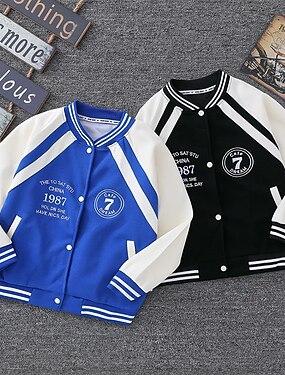 Kinder Unisex Baseball-Jacken Oberbekleidung Farbblock Langarm Comfort Knöpfe Weich Mantel Outdoor Mode Täglich Blau Grau Frühling Herbst Ab 4 Jahren