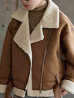 Kinder Jungen Jacke aus Wildlederimitat Fleecejacke Jacke Oberbekleidung Einfach Langarm Reißverschluss warm halten Winddicht Mantel Täglich Mode Lässig Kamel Braun Herbst Winter 4-12 Jahre