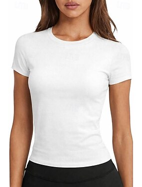 Damen Extraklein T-Shirt Sport-T-Shirt Tunika Einfarbig Stilvoll Lässig Kurzarm Rundhalsausschnitt Rundhals Normale Oberteile Fitnessstudio Sport Ausgehen Blau Aubergine lila Schwarz Weiß Rosa Sommer