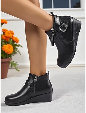 Damen Stiefel Täglich Stiefeletten Schnalle Keilabsatz Runde Zehe Lässig Minimalismus Kunstleder Reißverschluss Schnalle Schwarz Braun