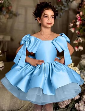 Kinder Mädchen Partykleid Einfarbig Kurzarm Besonderer Anlass Geburtstag Prinzessin Süß Polyester Midi Partykleid Sommer Frühling Herbst Kinder Blau Weiß Champagner
