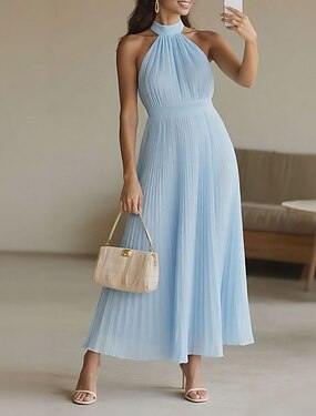 Damen Langes Kleid Maxikleid Etui-Kleid Chiffonkleid Neckholder-Kleid Elegant Mode Modern Täglich Büro Urlaub Normale Passform Einfach Ärmellos Neckholder Blau Sommer Frühling Herbst Winter