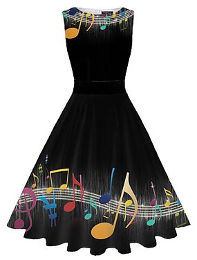 Damen Retro 1950s Vintage-Kleid Midikleid Täglich Verabredung Rüschen Bedruckt Note Rundhalsausschnitt Ärmellos Schlank Sommer Frühling 2023 Schwarz Weiß S M L XL