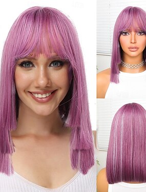 Cosplay Kostüm Perücke Locken Federleichte Locken Bob Bubikopf Gerader Pony Mit Pony Perücke 14 Zoll Gold Pink Synthetische Haare Damen Elasthan bezaubernd Komfortabel Rosa