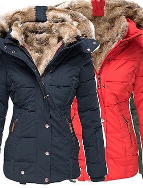 Damen Wintermantel Parka Warm Bequem Fellbesatz Reißverschluss Tasche Lässig Einfach Outdoor Urlaub Ausgehen Wochenende Lang Mit Kapuze Normale Passform Langarm Oberbekleidung Schwarz Rosa Rote
