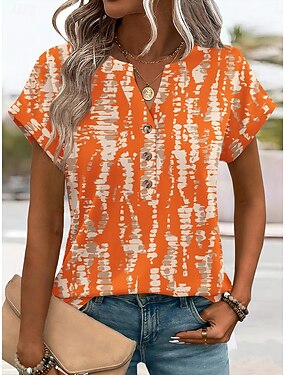 Damen T Shirt Druck Brustknöpfe Marmor Stilvoll Modern Lässig Kurzarm Henley Normale Oberteile Täglich Blau Gelb Purpur Grün Sommer Frühling