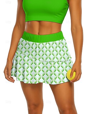 St. Patrick Damen Geometrisch Lässiger Rock Tennisröcke Patchwork Tasche 2 in 1 UPF50+ UV-beständig Mit Taschen Volleyball Tennis Badminton Shorts Rock Rot Blau Grün Tennisbekleidung