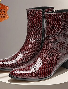 Burgunderfarbene Herrenstiefel aus echtem Leder mit Krokodilmuster und Reißverschluss – Retro-Stiefeletten für Business, Abendpartys und besondere Anlässe