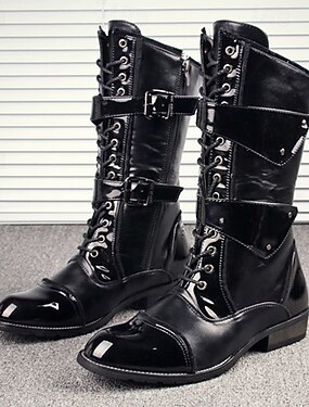 Schwarze Gothic-Kampfstiefel für Herren – Motorradstiefel mit hohem Schaft und Schnürung und Riemen für Punkrock, Cosplay und Nachtpartys