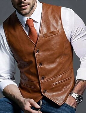 Herren Outdoor-Weste Wildlederweste Lässig Formell Vintage Mode Ganzjahres Tasche V-Ausschnitt PU Leder Thermowarm Mode Einfarbig Einreihig V Ausschnitt Schmaler Schnitt Schwarz Braun Weste