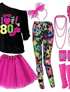 Disko 1980er Outfits T-Shirt Leggings mit Zubehör Retro Kostüm Damen Karnevalskostüm Maskerade Party & Abend Pride Parade Pride-Monat Erwachsene Weitere Accessoires Leggins T-shirt