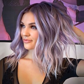 Synthetikperücke lockig Mittelteil Perücke 14 Zoll orange Kunsthaar 14 Zoll Damen modisches Design weich Party lila grün grau
